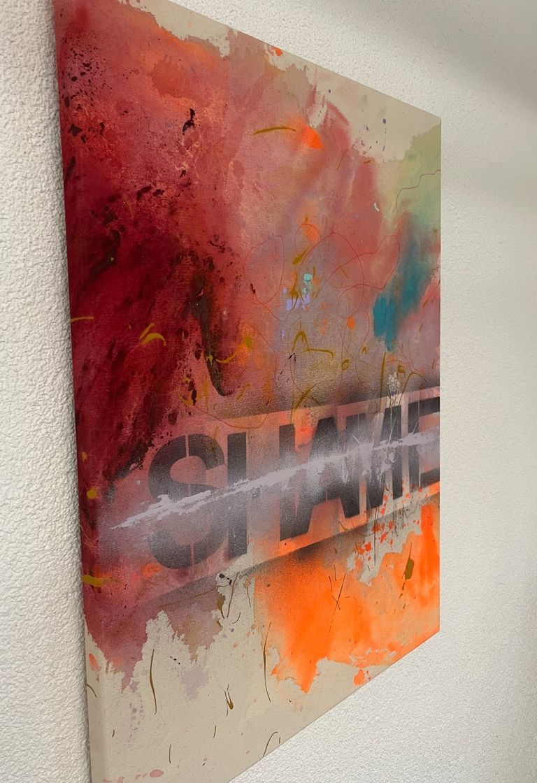 Medium: Acryl, Tusche. Spray Paint, Kreide auf